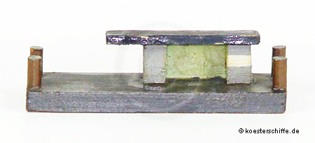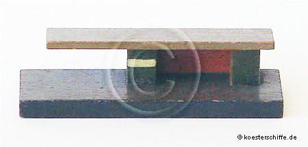 Fährponton, Fährhaus blau/orange, Dach hellbraun.