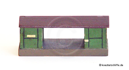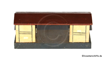 Lagerschuppen, Farbe rotbrau, Schuppen-Nr. "6", Dach aus Holz.